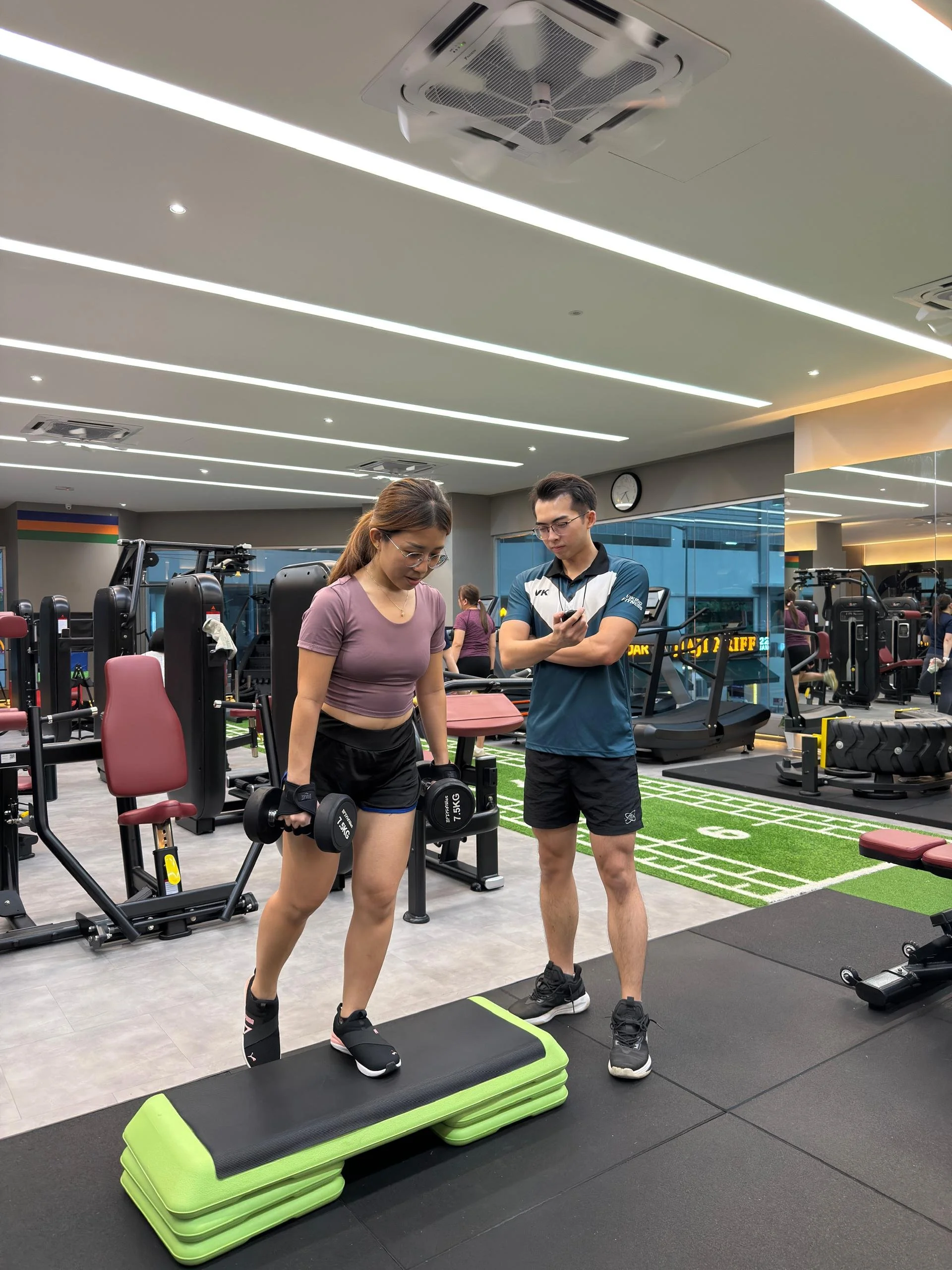 Expert trainer giving real-time workout corrections and coaching cues for better results.
